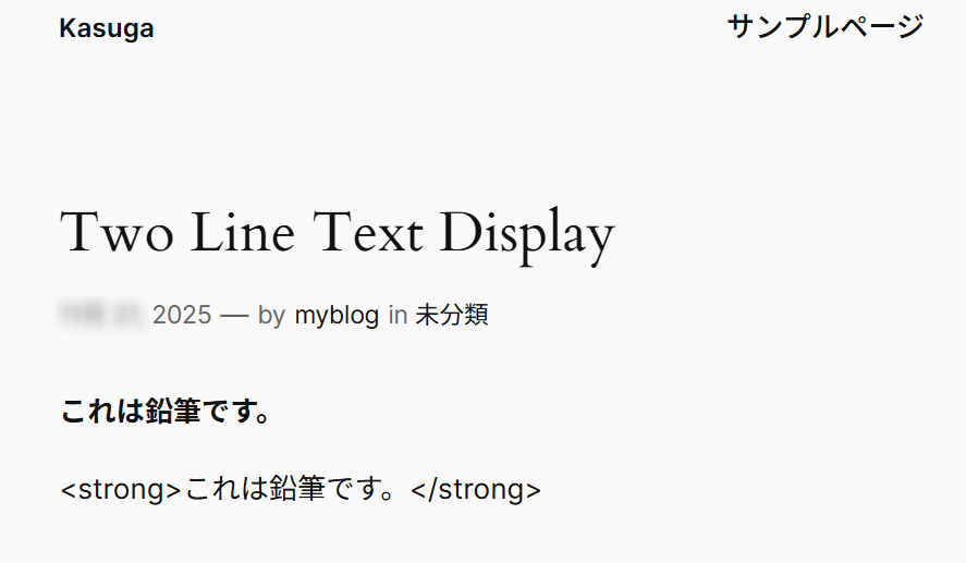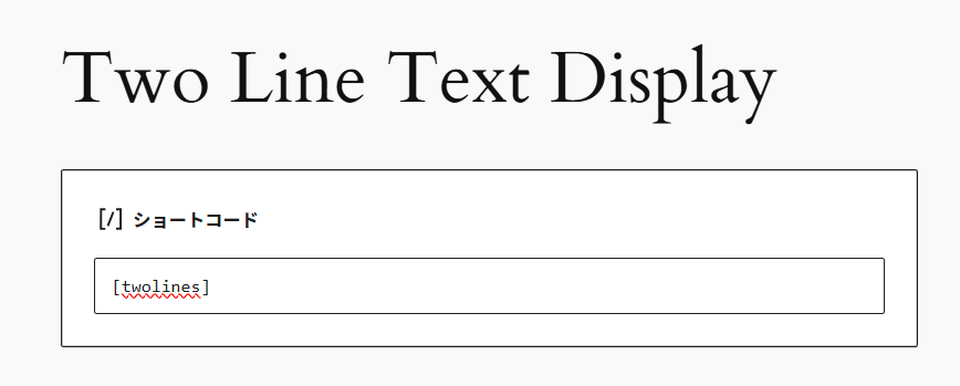 このプラグインでは、記事にショートコード[twolines]を設置すると、2 行のサンプルテキストが表示されます。