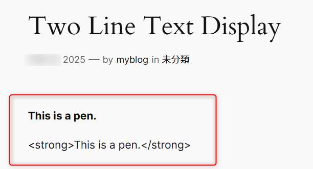 '<div>' . esc_html__( '<strong>This is a pen.</strong>', 'two-line-text-display' ) . '</div>';
